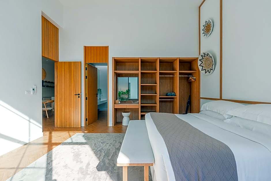 This suite's special feature is the sauna. This spacious suite consists of 1 living room, 1 separate bedroom and 1 bathroom with a shower and free toiletries. The well-fitted kitchen features a stovetop, a refrigerator, kitchenware and a microwave. The air-conditioned suite provides a flat-screen TV with cable channels, a washing machine, a tea and coffee maker, a seating area as well as pool views. The unit offers 1 bed.